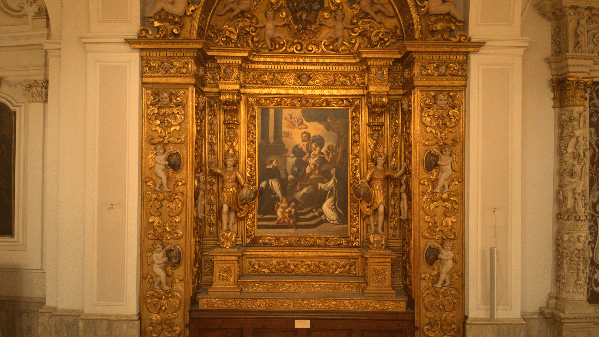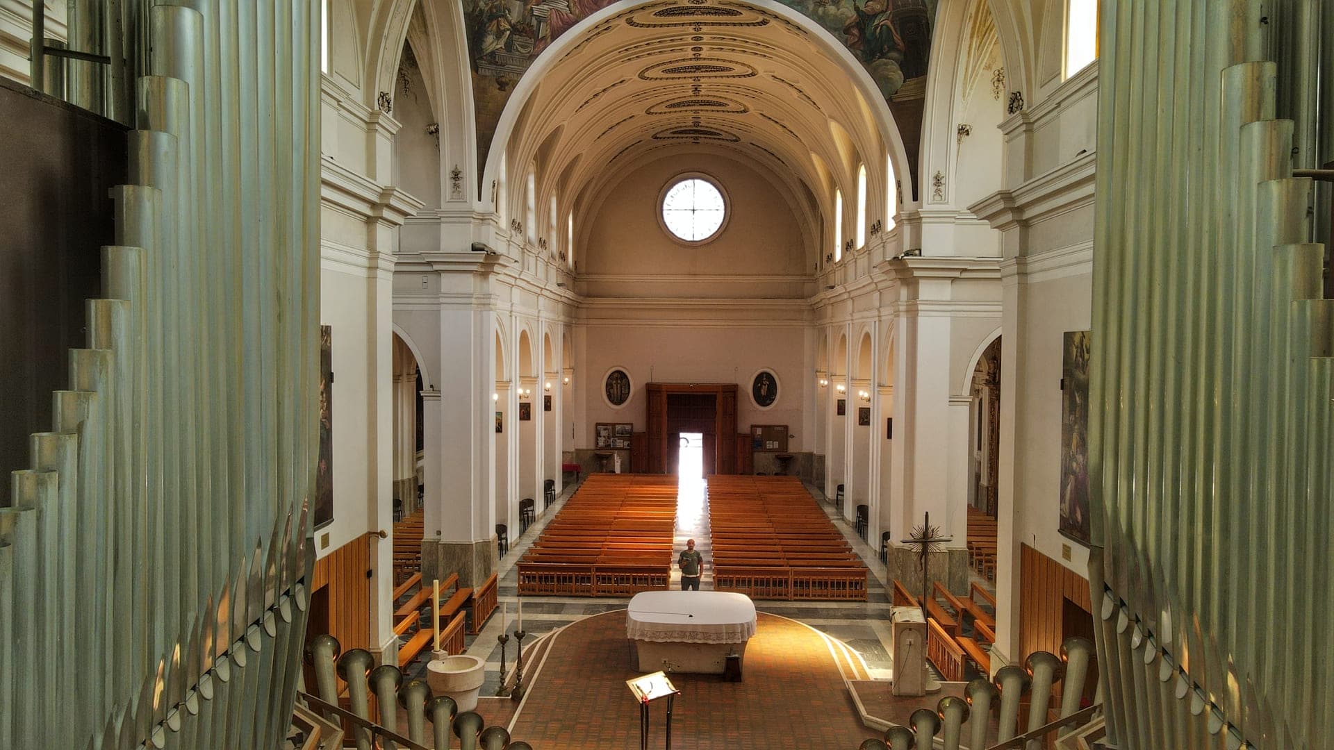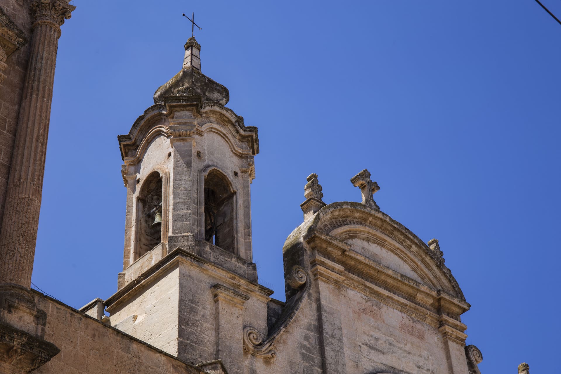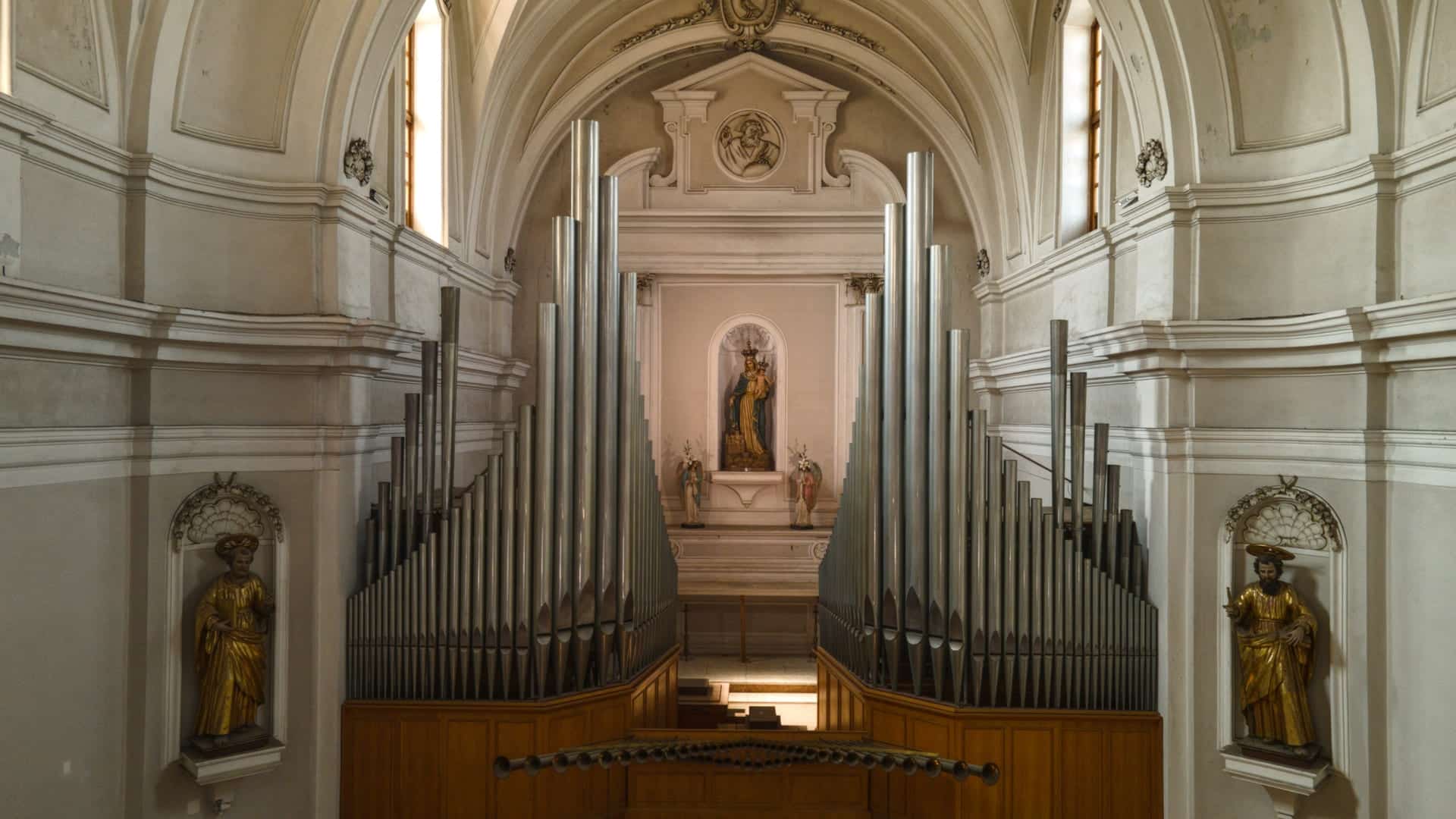 Ma dedica un po’ del tempo di questa imperdibile visita ad ammirare l’imponente facciata in tufo calcareo e carparo. Interpreta il linguaggio rinascimentale alla luce di riferimenti sia classici che pagani. Si presenta con ordini di colonne corinzie, sormontati dal grande timpano con al vertice la statua del Battista che dall’alto benedice la città. Oltre alle numerose statue che adornano la facciata, di gran pregio è il portale centrale decorato da un bassorilievo raffigurante la Madonna di Costantinopoli e da rilievi vegetali che ingemmano l’architrave. Sarà poi difficile staccare il tuo sguardo da quel centrale rosone dolcemente intagliato con un traforo di petali e foglie.