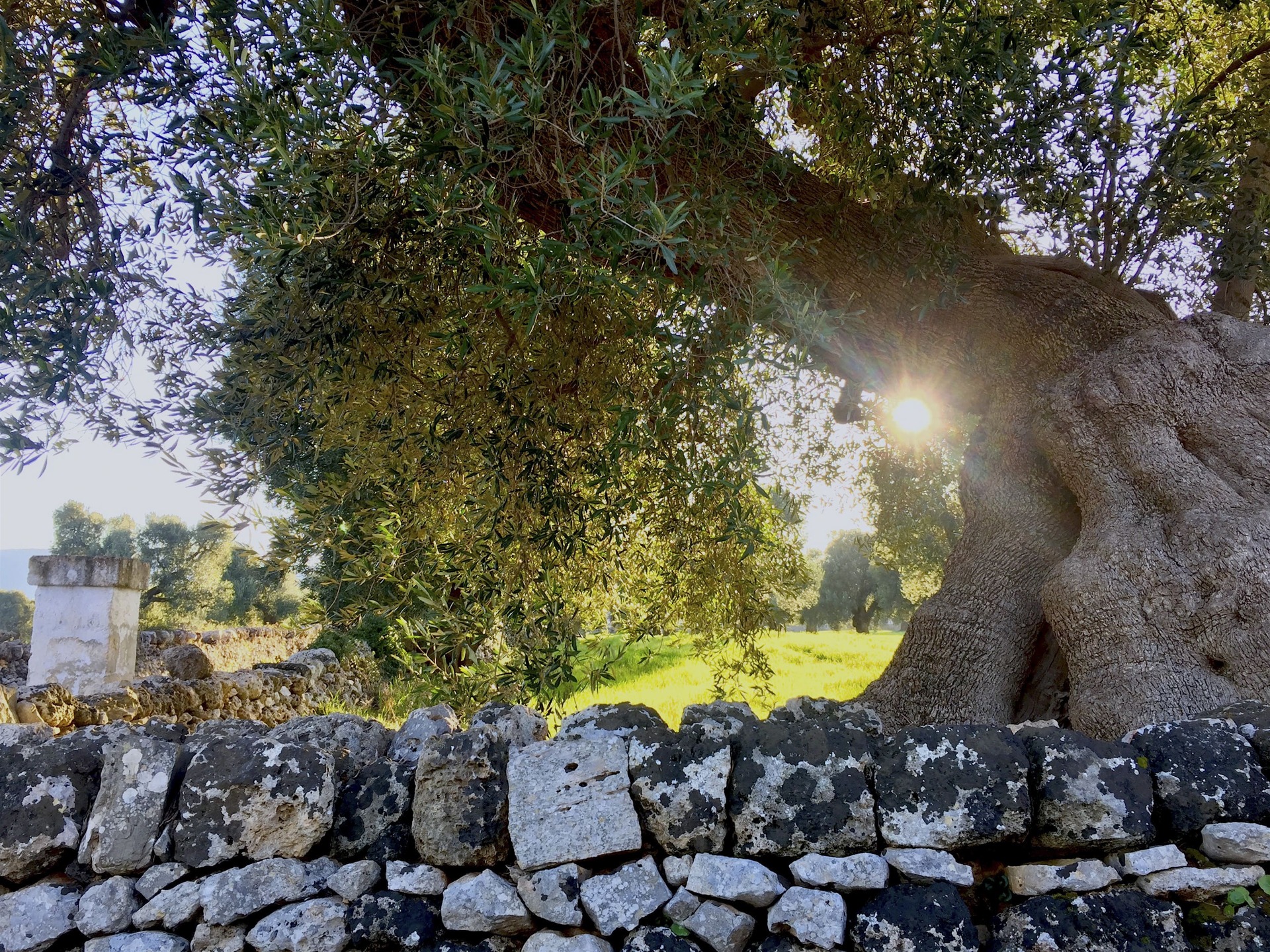 Le olive, poi, si mangiano anche non spremute, trattate in diversi modi: all’acqua, al sale, alla calce, in salamoia, al peperoncino, e si trovano su tutte le bancarelle delle feste popolari. Costituiscono un cibo semplice, appetitoso per ogni spuntino o antipasto, accompagnate naturalmente dal pane locale. Tale uso di mangiare olive risalirebbe addirittura al Neolitico, come attestano proprio certi rinvenimenti nel territorio di Fasano. La storia di questo olio è antica e si collega con quella dell’intera Puglia. L’olivo, pianta dalle antiche origini carica di rimandi simbolici e culturali, con i suoi tronchi scultorei e le sue chiome indomite ha modellato terre di Fasano, così come con l’olio che si ricava dalle sue bacche ha dato gusto alla cultura culinaria di una civiltà contadina ancora viva. Dalle piante di ulivo secolare delle terre di Fasano vengono colti a mano i frutti giunti alla corretta maturazione per ottenere un olio dal gusto differente per fragranza, colore, sapore e qualità. Non poteva essere diversamente per un territorio baciato dal sole e il cui clima è mitigato mare. È l’olio extravergine qui è davvero prezioso e possiede proprietà organolettiche in grado di assicurare un gustoso condimento ai piatti, oltre che garantire un’alimentazione equilibrata. Un alimento antico come la terra dalla quale è generato e in cui sono presenti le testimonianze di antiche masserie, con annessi antichi frantoi ipogei, in cui un tempo era lavorato. È il frutto della dedizione di chi, con amore e rispetto, coltiva e cura questi ulivi millenari, autentici monumenti della natura. Dalla potatura alla raccolta, dalla macinatura al consumo, la coltivazione dell’ulivo a Fasano è da sempre circondata da un atavico rispetto. Ogni goccia d’olio diventa preziosa e racchiude in sé tutto un mondo di saperi e sapori inimitabile.